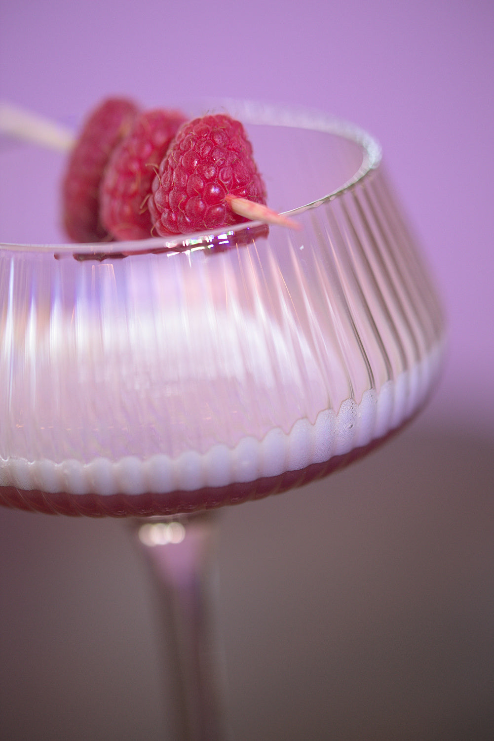 Serve in a coupe with fresh raspberries garnish.