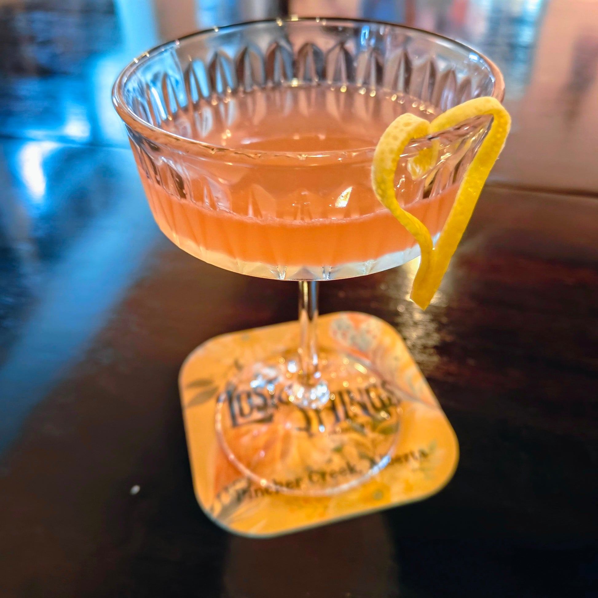 Rustic Rhubarb Gin, fresh lemon, Triple Sec and Campari.